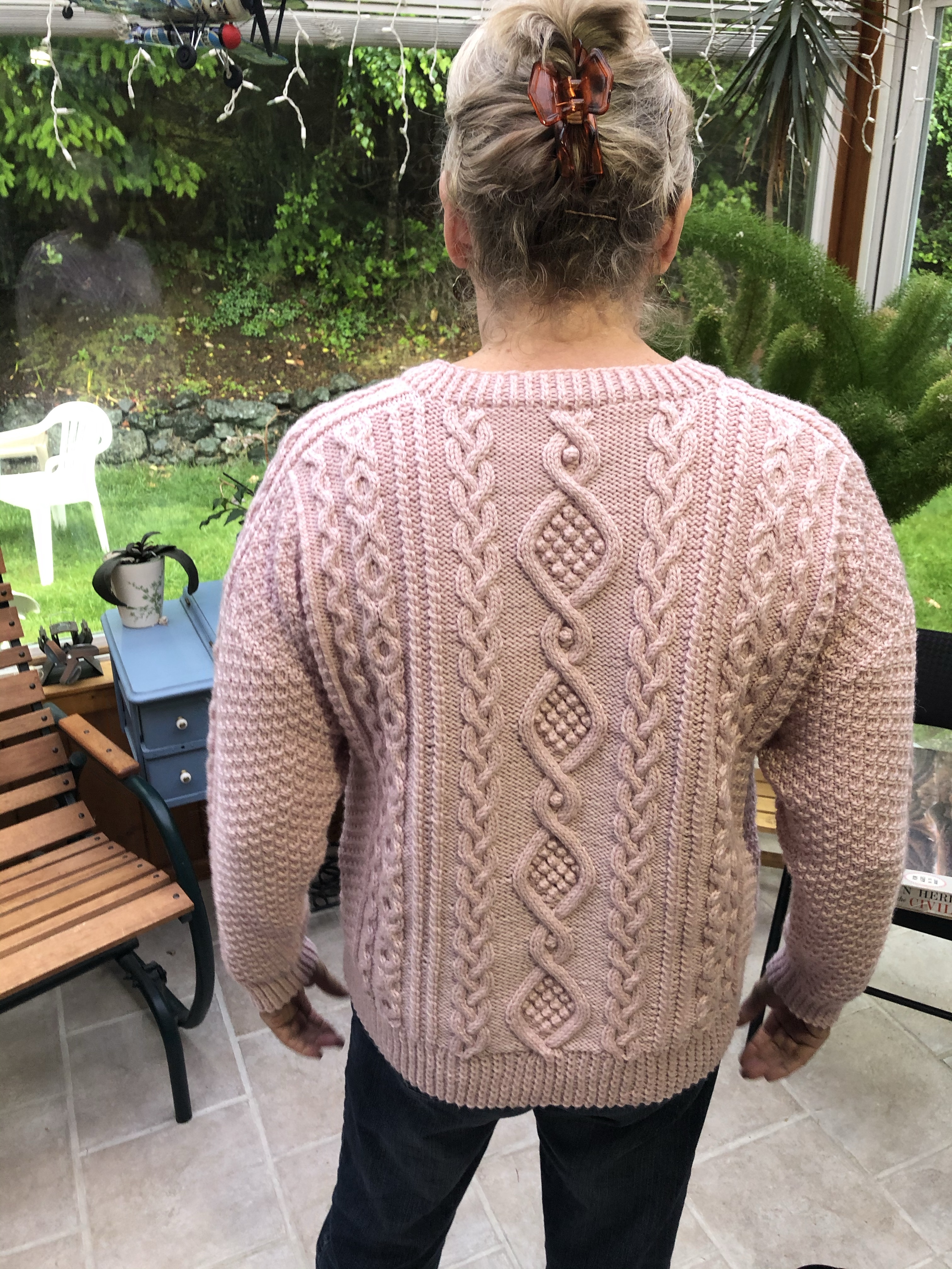 Well, for starters, I have passed Level 3 of the Master Hand Knitting Certification! I am done and am certifiable (although many people already thought that). As I mentioned, the capstone project was to knit and write a pattern for an Aran Knit sweater. And here it is.