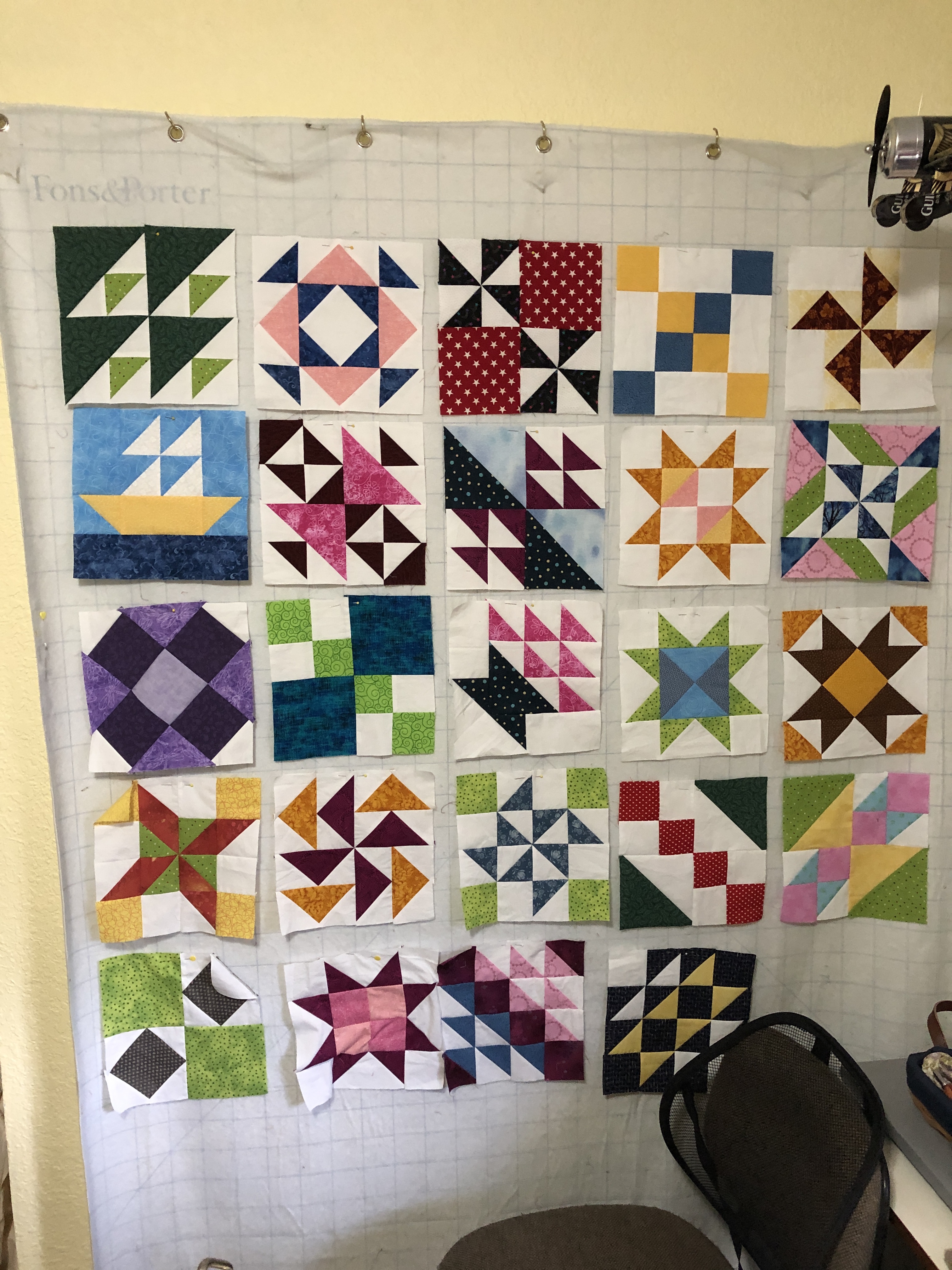 I’ve also been doing some piecing. Our quilt guild had a big estate sale from one of our members who passed away and left all her quilting supplies to the guild. I got an Accuquilt cutter for a song and purchased some dies for it. I’ve been randomly sewing squares with fabric from my stash and haven’t even touched a fraction of the stash. These will be used in a charity quilt.