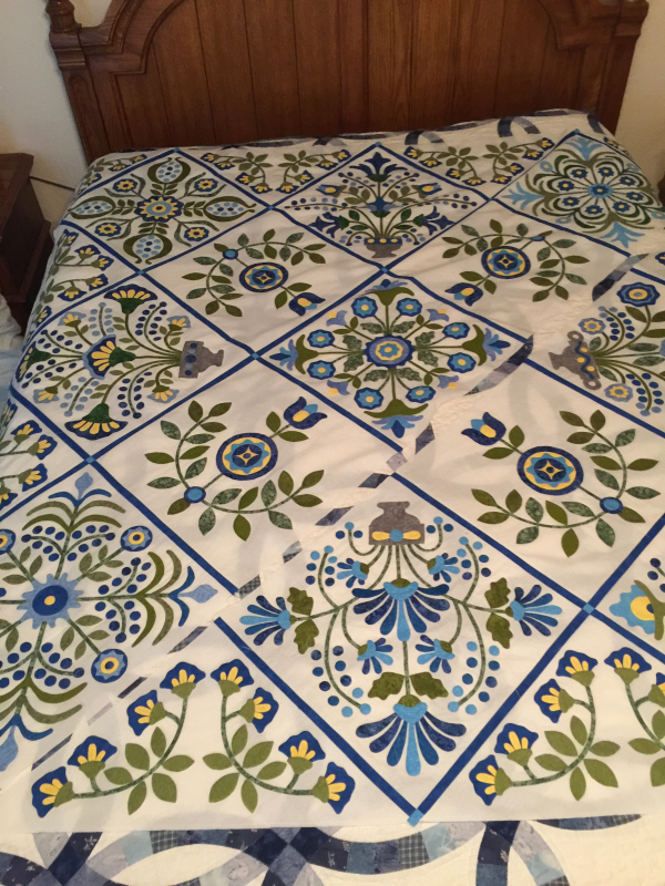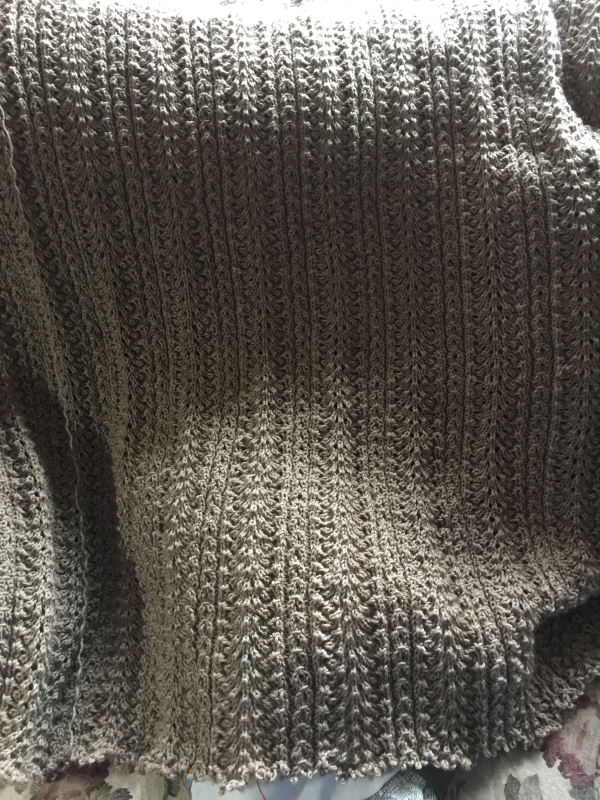 I have to say that it is the best fitting sweater I have ever made. It wasn’t without a little heartache. This is the second sweater I knit. The first suffered some major problems and I abandoned it and started over. But now I’m done and can go on to other projects. I need to work on a sweater for my son, one I’ve started for me, and of course, I must start a new project because, well, because I can. This is the first square of a blanket called Indian Nights. This project reeled me in because it has elephants in it! Not in this square, but stay tuned. Oh, and birds.