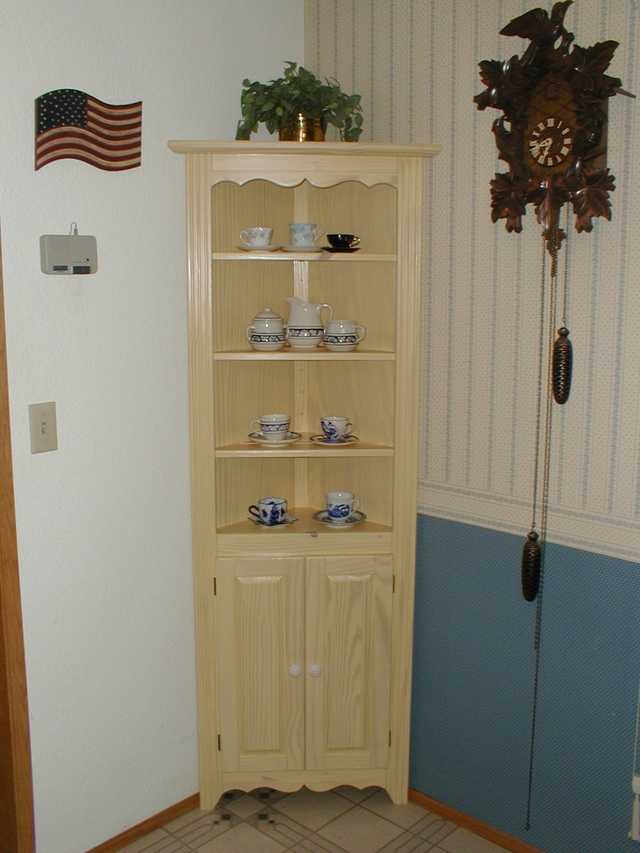My sister’s sweater was a big hit! Although she knew I was working on it, she seemed genuinely surprised that I got it done in time for Christmas. Oh ye of little faith. The gorilla sleeves really were too long for her, so while my hubby cooked Christmas dinner (turkey and all the trimmings – although some of us helped with the trimmings!), I snipped the sleeves and knitted the cuffs down. She wanted a turn back cuff. I let her get away without a picture, though. My husband made me a beautiful corner cabinet! I knew he was building something, but expected a small box, not a piece of furniture.