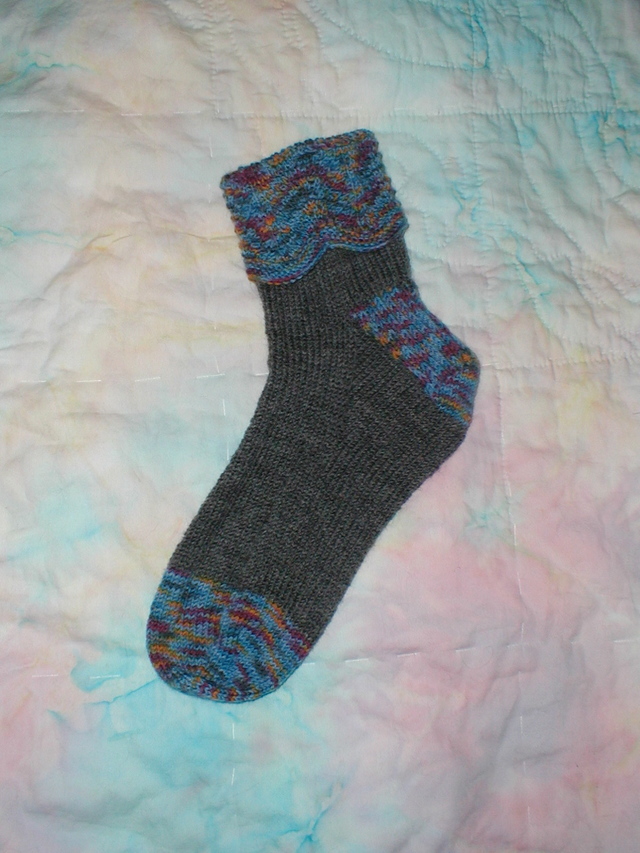 Post Christmas knitting has been Marguerite’s Old Shale Two Socks. Sock #1 is finished: