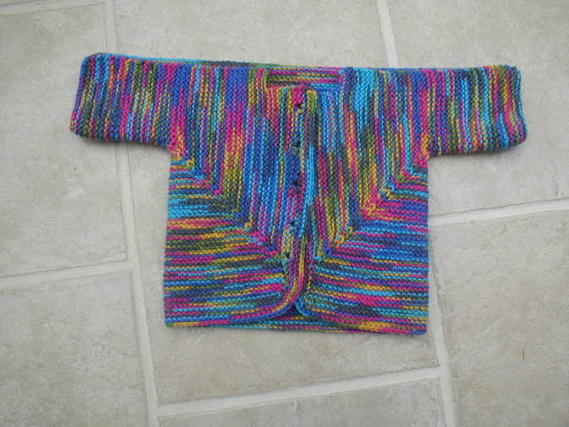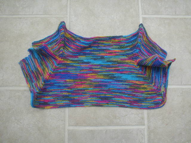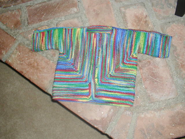 In the immortal words of Yogi Berra, “It’s deja vu all over again.” Once again I find myself working an endless border around a shawl. This time it’s the Pacific Northwest Shawl. Of course, it hasn’t taken me nearly as long as the last one. I think I started this one only about a month or two ago – it’s really knit up fast. But I am really tired of the border and so have put it away for awhile. But I did finish another Baby Surprise sweater. The fun part of this design is that when you finish knitting you have this: