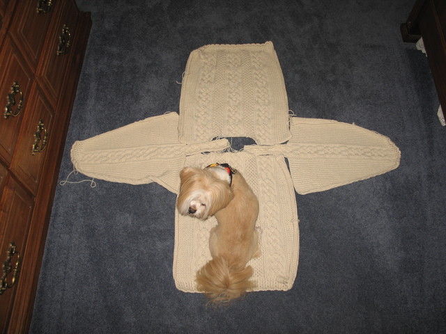 Well, we’ve still managed to dodge the heat here in the Pacific Northwest. Although it got up to almost 80 today (hot for here), it has cooled off nicely at night. I haven’t even switched to our summer blanket yet. It has made for nice knitting weather in the evening.