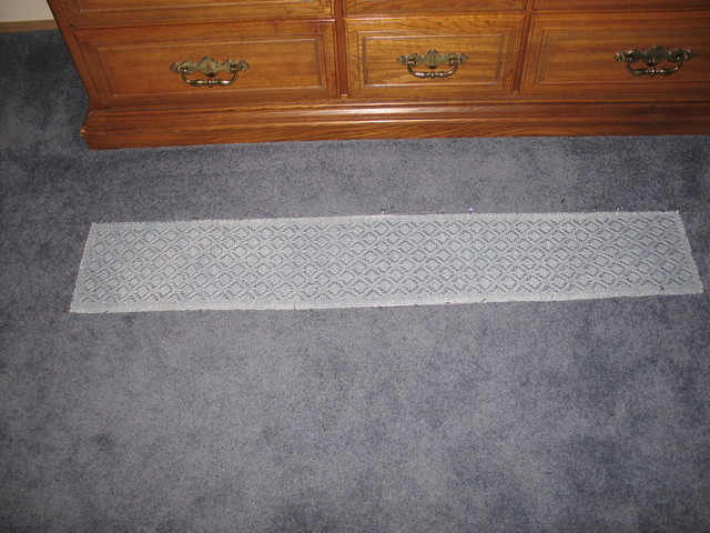 I’m continuing on the second Estonian scarf – no progress pics because I think fine lace is pretty unexciting until it’s blocked. As I mentioned, I do like this scarf – lots of mindless lace (if that makes sense!) and an exciting part at the end. I mentioned a while ago about people in my life that I considered lace knitworthy. I think I’m adding some people to the list. I have some quilting buddies who have been meeting with me for almost 10 years in a Round Robin quilt group. Here is one of my quilts that they helped me make: