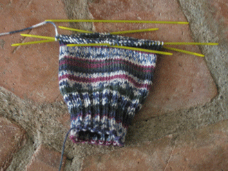 In the end, the winner was a project already on the needles – Peacock Feathers, by Dorothy Siemens. The yarn – Knit Picks Shadow in Vineyard. The needles – size 4 Addi Turbos.