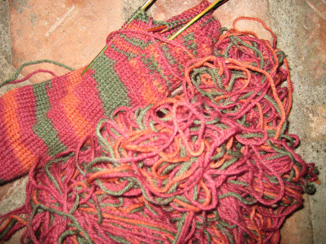 It seems she had a fondness for yarn. Several times I caught her stealing this sock yarn, but she always surrendered it willingly. While I was at work Bill left her unguarded for just a little while and came back to find this. One of my Harmony needles was broken in three pieces. Yes, I know they come in sets of 6, but I already lost one on the airplane coming home. So I’ll need to replace this set. I’m still untangling the yarn!