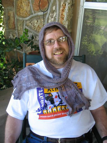 Although there's been precious little knitting going on, I do have modeling photos to share. Doesn't my mother look gorgeous in her Flutter scarf?
