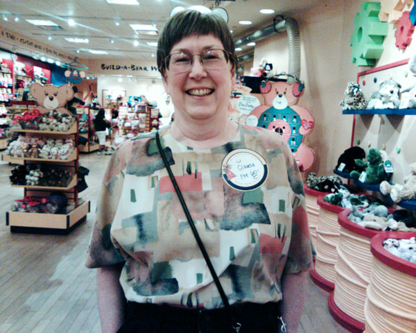 I mentioned that last weekend was spent with my sister ferrying her to and from some medical tests and celebrating her birthday. I’m happy to report that she received a clean bill of health – especially comforting since she is a cancer survivor. For her birthday we decided to act like children and went to Build-A-Bear and made ourselves some teddy bears. She even got a sticker proclaiming her the birthday girl:
