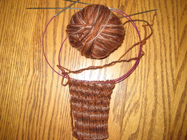Ok, so they don’t match. At this point I’m not getting picky but am declaring that my knitting mojo has returned. On the left is a simple top down sock using a stitch pattern from Sensational Socks. Yarn is Dream in Color Smooshy in the Chinatown Apple colorway. On the right is a Coriolis sock from Cat Bhordi’s New Pathways for Sock Knitters. It bears closer inspection: