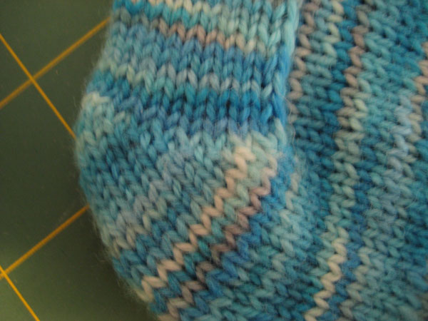 And the cuff, showing the spiral and a picot hem with sewn bind off. This was actually my second attempt at this. The first time I got as far as the heel and just could not wrap my brain around the instructions. The second time I concentrated a little better and it was far simpler than I thought. Cat’s books are not for the faint hearted, but I really did enjoy this and will make more. This was toe-up using a Turkish cast on with Deb’s excellent tutorial. Yarn is Zen Yarn Garden Squooshy in the Anna Grace colorway. You can get your own at Sonny and Shear.