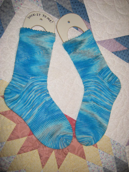 Not the best view of the cables, but the color is pretty true. You'll notice that there is some cable splay in the border. Janet has purposely left it in so that the sweater will have some shaping. I'm just a tad nervous about that as I have no shaping in that area. I'm going on faith assuming that some of it will block out and the rest will give me the nice feminine shape that I lack! Miracle sweater!! Or delusion.