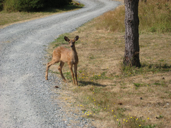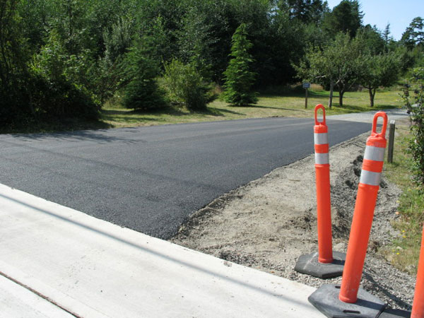Time to bring you up to date on our neverending road project that has finally ended. As you may recall, last spring WSDOT (affectionately known around here as "washdot") started a major road project at the end of our driveway. They lowered the road as much as 10 feet in some areas, but about 3 feet by our driveway. Unfortunately, winter weather came early and they were forced to put the project on hold until this spring. They left us with this lovely bump for the entire winter: