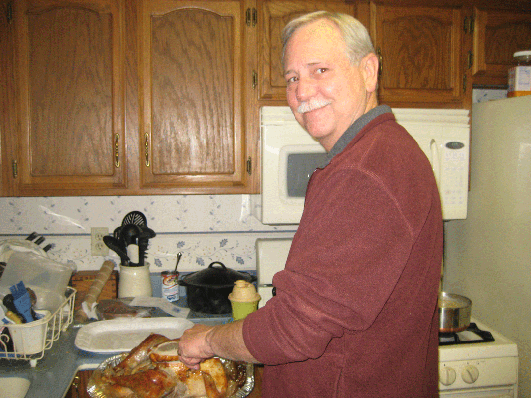 The damp weather did not dampen our spirits and we had a lovely Thanksgiving. In years past we've gone to the local Community Thanksgiving, but I decided to cook at home this year. Hubby carved the turkey: