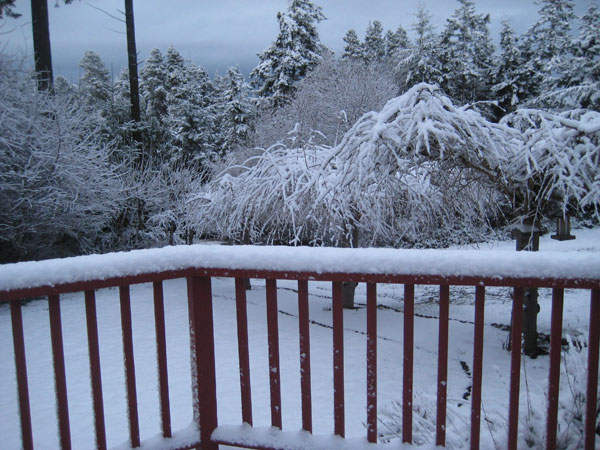 It is extremely unusual for us to get snow this late in the season. Driving into work was really treacherous! The roads were solid black ice. But by this afternoon it was all gone off the roads and only a little left on the deck and lawn. By tomorrow afternoon it will be all gone and I can hopefully get some pictures of spring in the making.