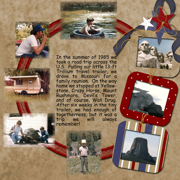 I've also put off posting because of lack of energy. I'm still battling bronchitis. I thought that last week I was getting better, but experienced a set back this week. I've managed to get to work and back, but seem to have problems getting enthused about much of anything. I have done some scrapbook pages. This one chronicles a wonderful road trip we made back in 1985: