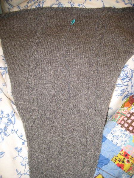 I've been meeting myself coming and going this week! It hasn't been any one big event, but just dozens of little things that have conspired to eat away at my time. Hubby's sister is gone on an extended vacation and we've come to realize how much caregiving she does for my mother-in-law. It's taken two of us to take up the slack! On the plus side, I've done a lot of sitting around waiting during her various appointments, so that translated into some good knitting time. I was able to finish one sleeve of hubby's Torgier: