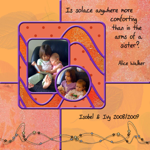 Instead, I'm going to look at getting a good, high quality SLR camera. I love photography and would love even more getting good at it. This is also something that I can share with hubby and something that I can integrate with what is becoming a passion almost as great as quilting and knitting – digital scrapbooking. I just bought some CD's with three years of back issues from Scrapper's Guide and have been having a blast learning new techniques in Photoshop Elements. Here's my latest page: