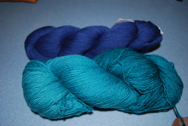 The color is just about spot on! The darker blue is Cascade Heritage and the teal is Araucania Ranco. They will both be destined to become Cookie A. socks if I can ever again in my lifetime wrap my mind around a complicated knitting project.