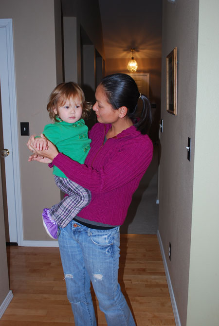 On the way down to deliver the girls to their new home I told Isobel that we were going to their new house. I told her that she would be living there with Mommy and Daddy, but that Nana and Yeh-Yeh could come visit her often. She said, "And you can watch me grow up!" I got a little teary eyed at that one. Out of the mouths of babes! Poor Ivy was so sad, she cried all the way down. Not screaming, just quietly sobbing. I think she was tired and missing her parents. When we drove up to the house and she saw Abby, she was SO happy. And when she walked into the house and saw all of her familiar toys, she was grinning from ear to ear.