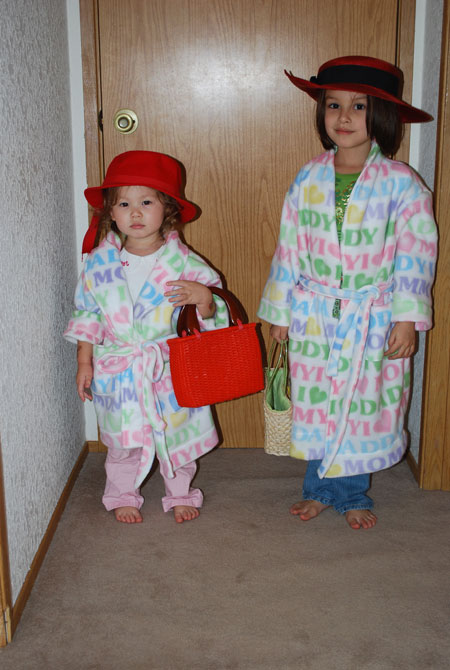 This was the first Christmas with the whole family nearby and it was as wonderful as we hoped. The girls were very excited, but also very grateful for the gifts they received. One of their favorites was a dress-up box that my sister (with a little help from me) put together. Two lovely ladies ready to go shopping: