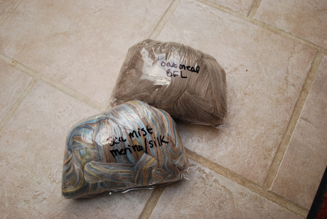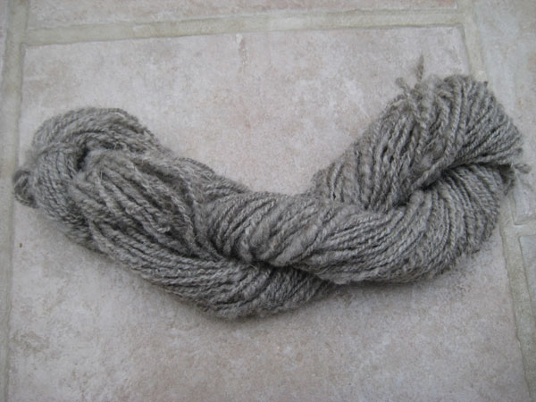 This is my first official skein of yarn. The fiber was given to me by the owner of the shop where I bought my Traveler. She referred to it as Icelandic wool and said it is from a sheep on Whidbey Island. Local yarn, no less! I am quite proud of it. It's a little bumpy and thick and thin, but that's to be expected for my first try. And not all of the bumps are totally due to my inexpertise. The fiber actually had some slubs in it, so there was no getting around them. They do tend to hide my little glitches, though.