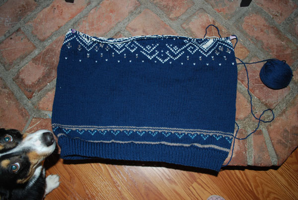 As usual, Maggie feels that she needs to get in on the action. Just a few more rows and I'll be into the three color rows again, which I am not looking forward to! But bless Ravelry, on the Stranded group I got some good ideas and am anxious to see if they help.