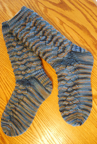 These are the first hand knit socks she's ever had. She was amazed at how well they fit and how comfortable they were. Yarn is Lorna's Laces, size 0 needles. Next up are socks for Kim. I checked out Socks From the Toe Up from the library. I'm going to try one of the patterns. In looking at the book, I think it's one that I may want to add to my library.