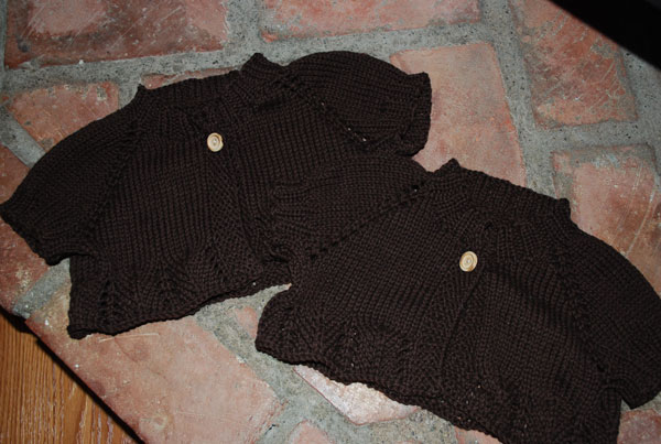 I do have two FO's to show – a quick and easy project courtesy of Knitting Pure and Simple. In just two days I knocked off two Little Girl's Shrugs:
