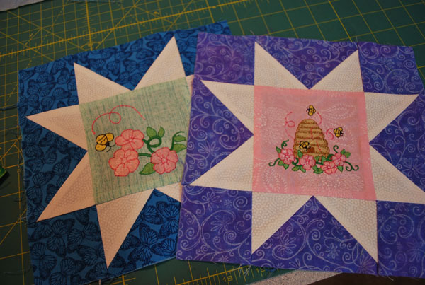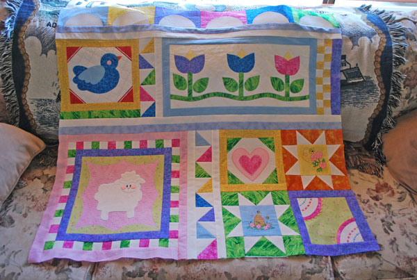I was especially pleased with the little sheep block. I had put it off to the last because I thought it would be a bear appliqueing the Minkee fabric. But it went together with no problems at all: