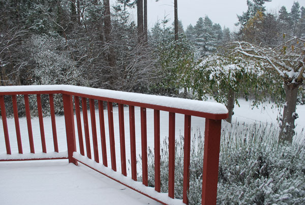 A very rare early snowstorm in Western Washington. This was taken about 6 hours ago and it's been coming down heavy ever since. Cars were slipping and sliding all around me, but I was nice and steady on the road and sure footed coming up the hill to my house. However, I was not about to tempt fate and parked Forest in the garage where he will stay until the roads improve! All of this snow will probably be gone by Thanksgiving. Or at least we hope so!