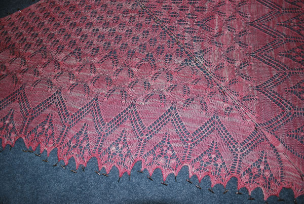I've also made the impossible goal of 10 shawls in 2010! I finished #10 this week. This one still needs to be blocked, but I did finish blocking the previous ones: