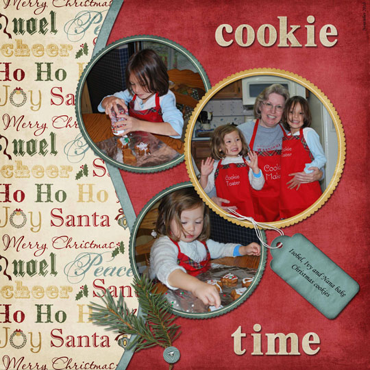Like many of us who entertain multiple hobbies, it seems as if they take turns coming to the forefront and becoming an obsession for a time. Recently I've been spending a lot of time on digital scrapbooking. I've signed up for a new class and am trying to refine my skills and speed up the time it takes me to design a page. Currently I can often spend a whole day on one page. I have a new incentive to get busy, though. Several weeks back I decided to give the granddaughters the scrapbooks I had been working on since their births. I thought they were old enough to enjoy them and since the pages are digital, if one gets ruined or bent, it's no big deal. They were absolutely enthralled with them. They each looked through their own book and then traded and looked through the other. When Isobel saw all the blank page protectors in the back of her book, she said, "Look, there's room so we can put in our adventures!" Awwww! So now Nana needs to make a concentrated effort to keep up. This past week we had them for an overnight visit and made Christmas cookies: