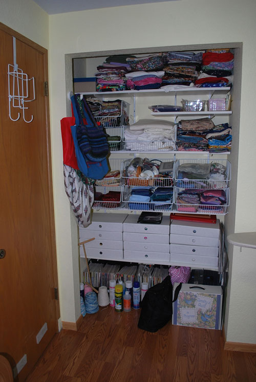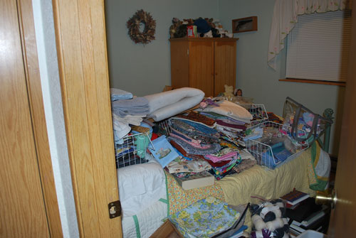 Also on the bright side, I am so enjoying my new, improved sewing room. Being able to see all of my projects, I am determined to put a dent into the huge pile of UFO's. I finished sewing the tops for the granddaughters' quilts and got them spray basted. I'll start machine quilting them on Monday (pictures to follow later). I'm also enjoying having the space to spread out and handquilt: