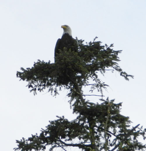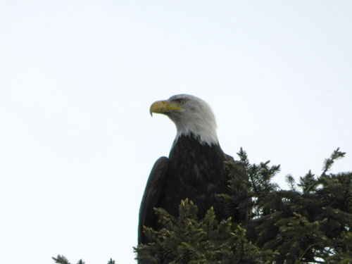 He hung out for about an hour and and half and then went on his merry way. The crows continued to dive bomb him and occasionally he would snap at them if they got too close. The crows were really flirting with danger because an eagle will grab another bird right out of the air if they so choose. This may be one of the nesting pair from across the street, or one of their offspring looking for a place to nest (they had three babies this year). I have mixed feelings about wanting him to make a home in our yard. It's a wonderful opportunity to observe bald eagles first hand, but then you become a nature preserve and there are a lot of restrictions on what you can and can't do with your property.