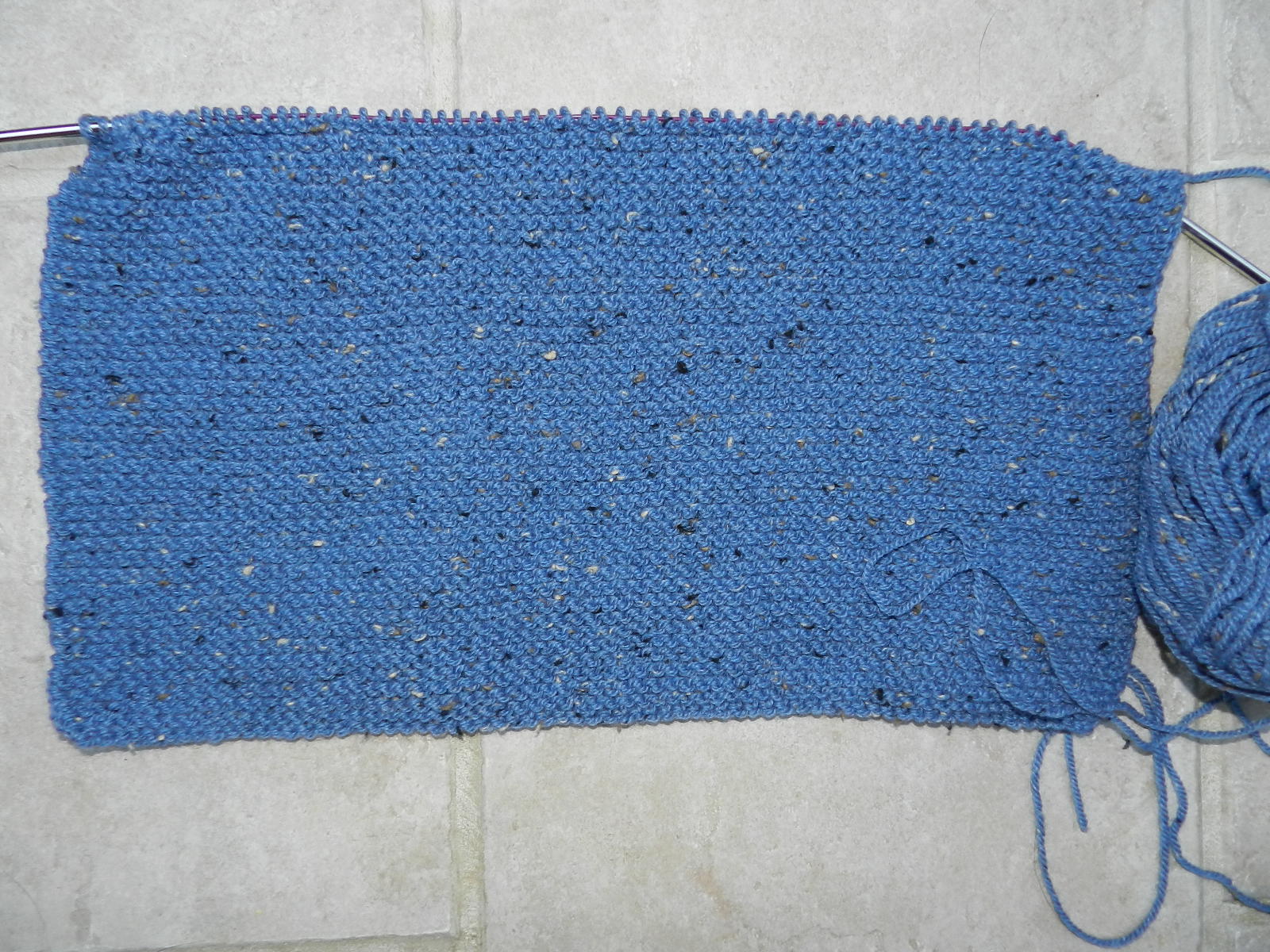 I also found this simple pattern while browsing a yarn store in Friday Harbor last week. I forgot the name of the store, but it's right on Spring Street and is quite nice. The pattern is amazingly simple – just five garter stitch rectangles. The pattern instructs you to knit them separately and sew them together. However, I modified it since I have an aversion to sewing up! I left the shoulder stitches live and did a three needle bind off, then picked up the sleeve stitches at the shoulder and knit down. That left only the underarm seam to sew. The pattern goes by the imaginative name of "Encore Worsted 1528", but you can also check under Baby Kimono in Ravelry.