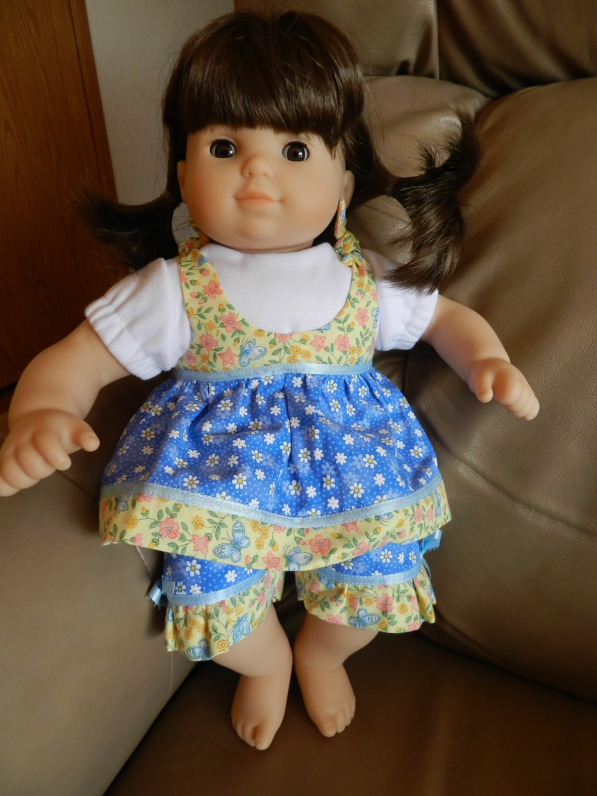 I also made this summer outfit (modeled on my doll):