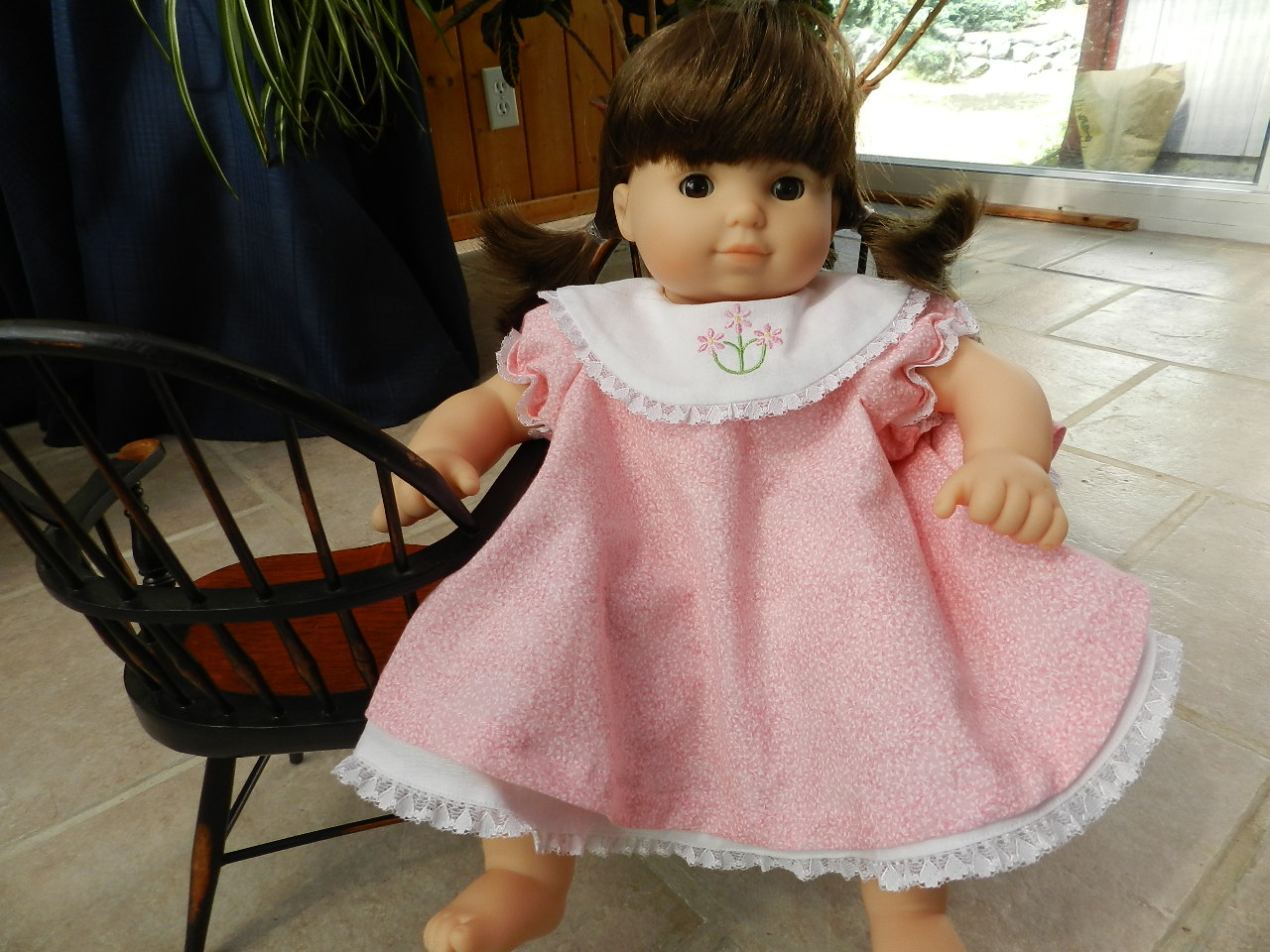 Unfortunately, I ignored the advice on the last pattern to measure my doll first and found out that she's a little chubster. The dress is pretty tight and doesn't quite meet in the back. Live and learn.