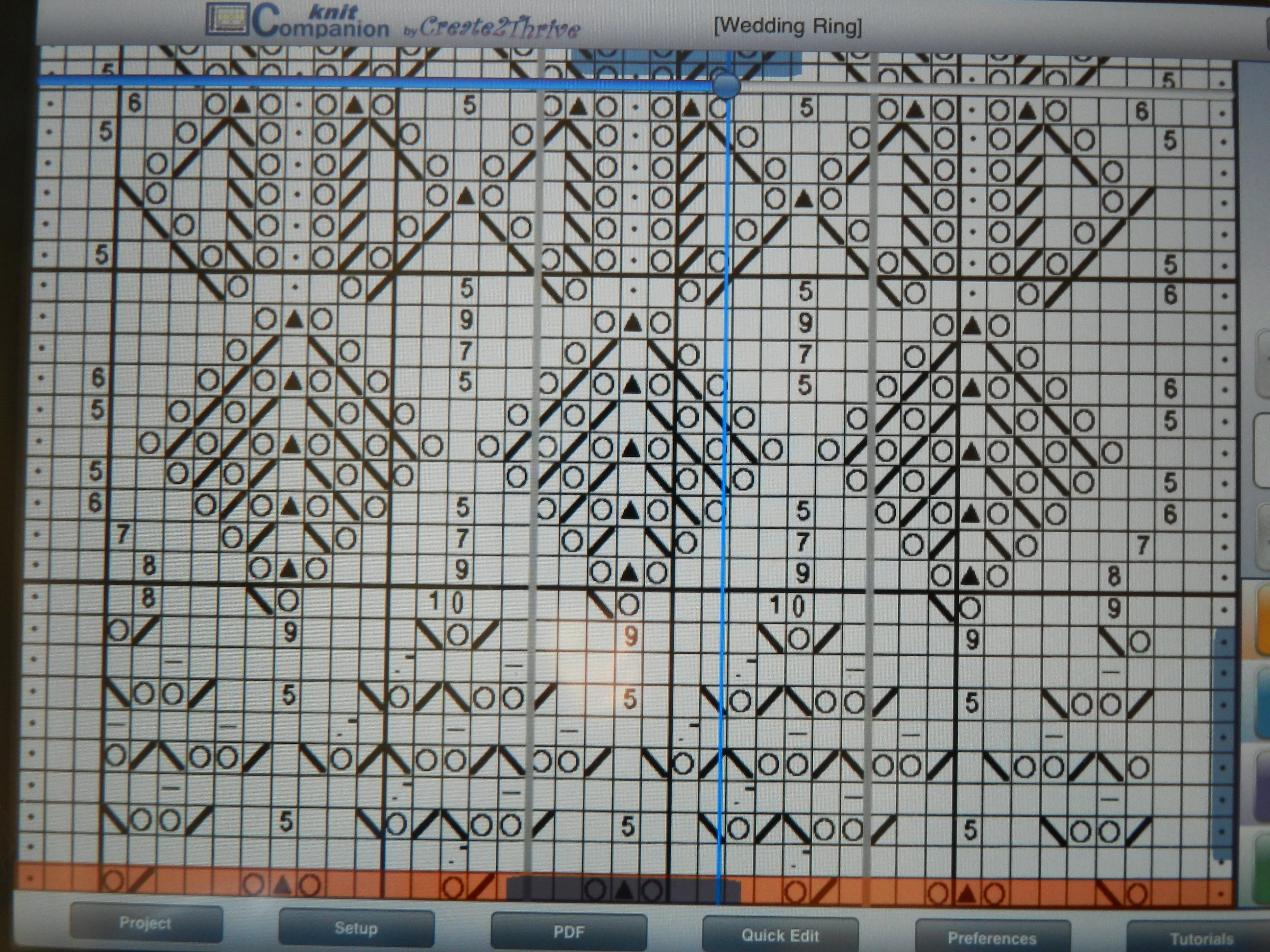 One of the complaints about the program is the cost – $16.00. But I think we iPad/iPhone users have really gotten spoiled by the cheap 99 cent apps. This is really only the cost of a decent skein of sock yarn and will save me so much time and frustration. To say nothing of printer ink! No more struggling with paper charts, no more highlighter tape, no more losing my charts or having the highlighter tape come off in my knitting basket. No more taking a break from a pattern only to pick it up again and wonder where in the world I was.