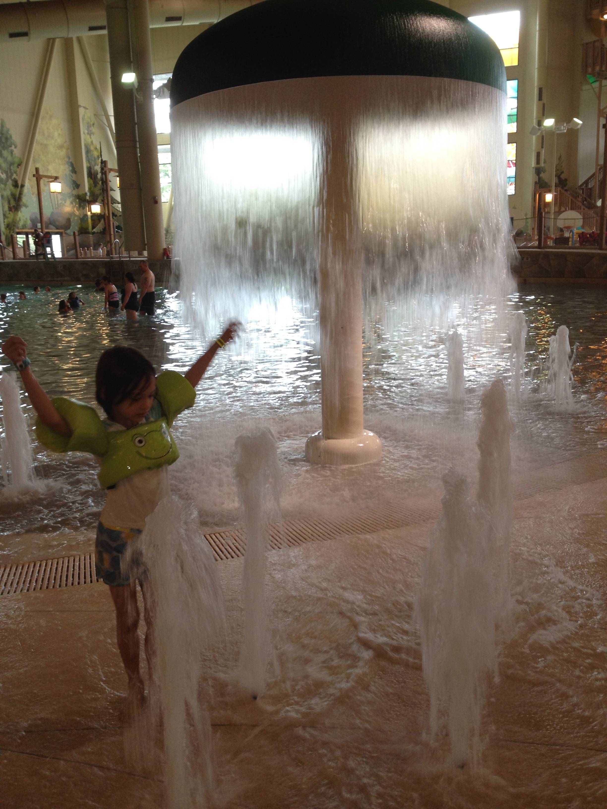 The first day Abby took Isobel on the more adventuresome slides and I stayed with Mei-Mei in the wave pool and kiddies pool area. However, on the second day, Mei-Mei got her courage up and went on one of the big slides. I was really worried, because she can be rather timid, so Mom was up at the top and I was down at the bottom to catch her. The look on her face as she came down was pure joy! After that there was no stopping her and I lost track of how many times we went down the slide. Since Mom and Isobel went off to do other things and Mei-Mei could not go up the stairs by herself, that meant that every time she went, Nana went! I'd go down the slide first and be there to catch her at the bottom. Hubby mentioned that there didn't seem to be any photos of Abby or me. I only took out my non-waterproof iPhone for a few pictures and Abby and I were usually in separate places with the girls. Even if I had a picture of me in a bathing suit, there is NO way I would post it in my blog!!