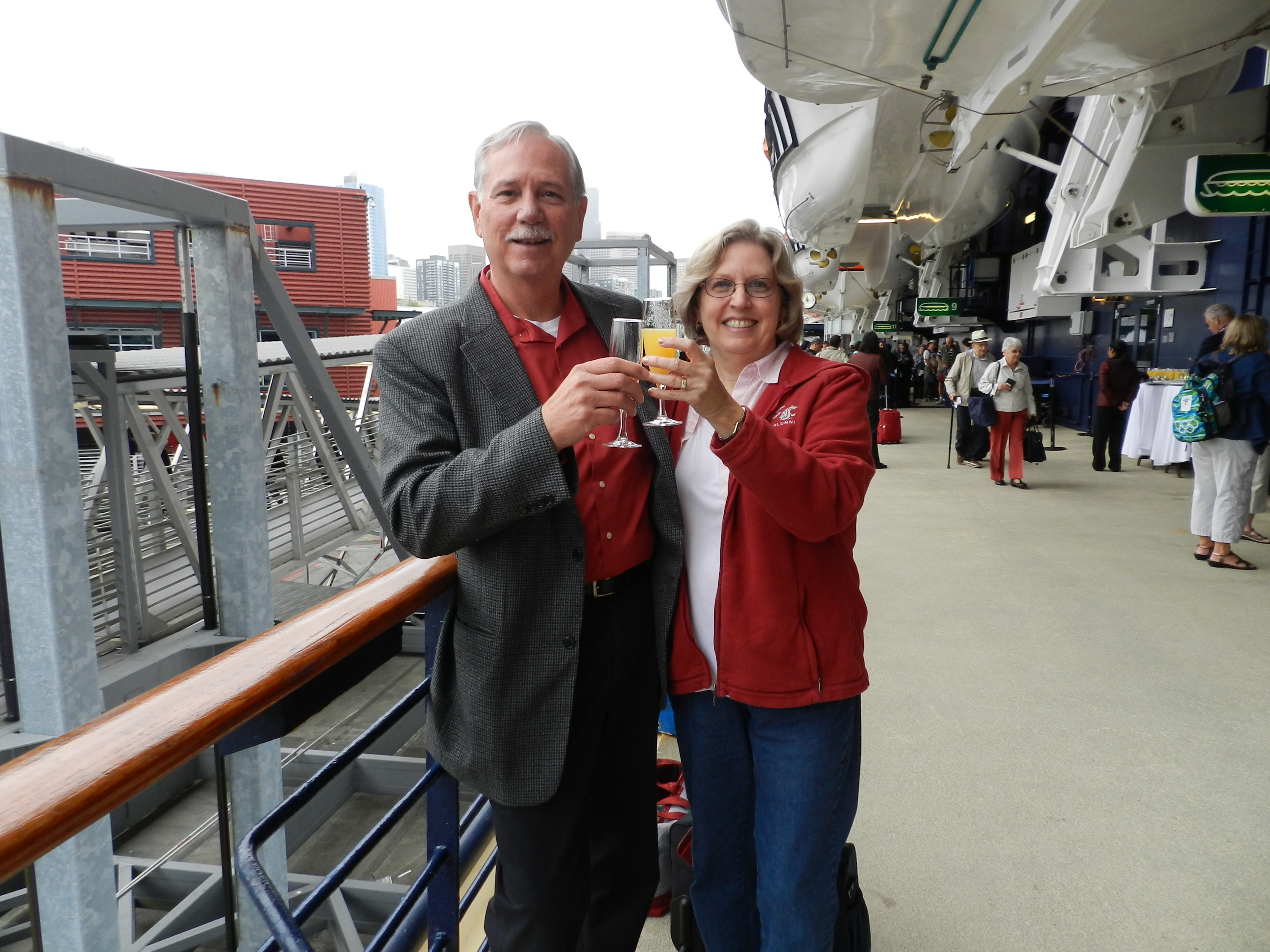 Here we are toasting as we arrived onboard the Celebrity Infinity: