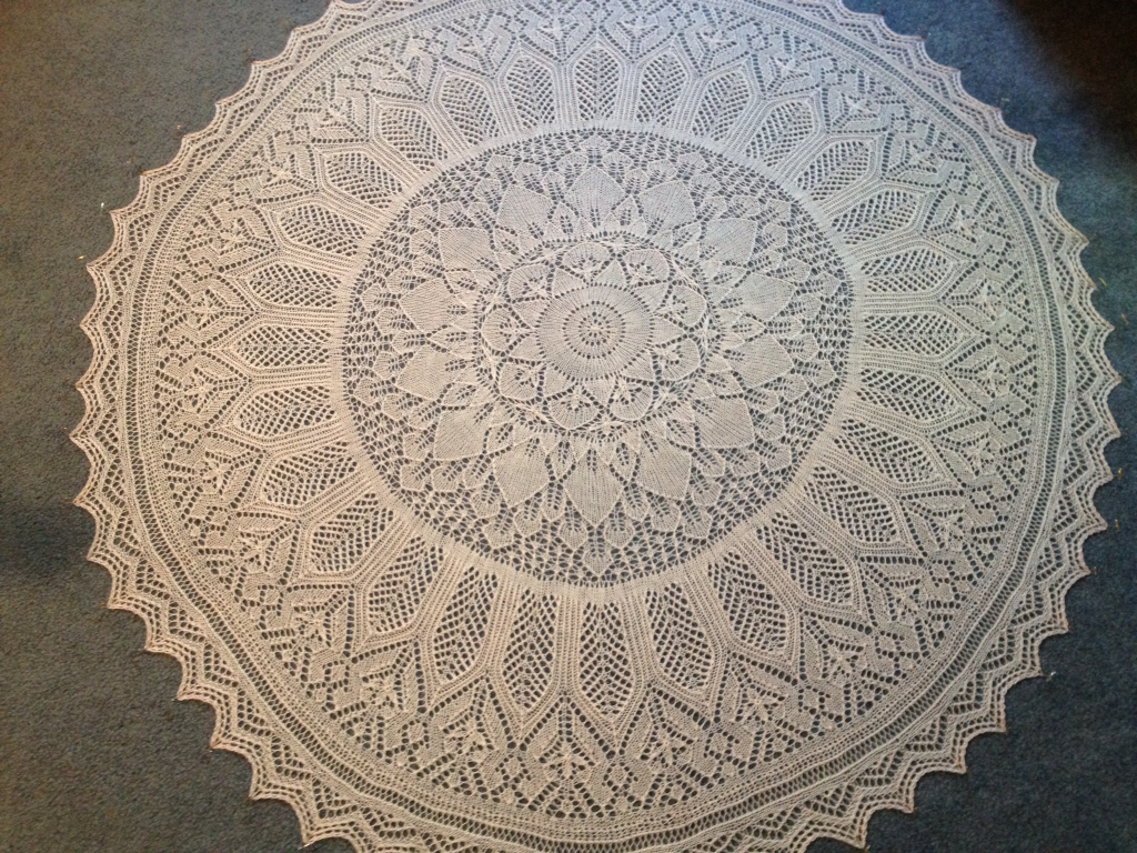 Since we got home I’ve finished my Wilshire Shawl and finally got around to blocking my Evenstar.