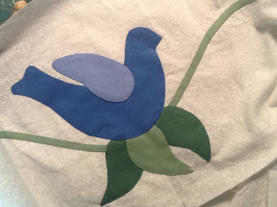 One thing about hand quilting is that it is such a slow process that progress pictures look remarkably the same. I'm continuing on the border and seeing the beginning of the end. I finally decided on a design for the purple borders – little marching leaves.