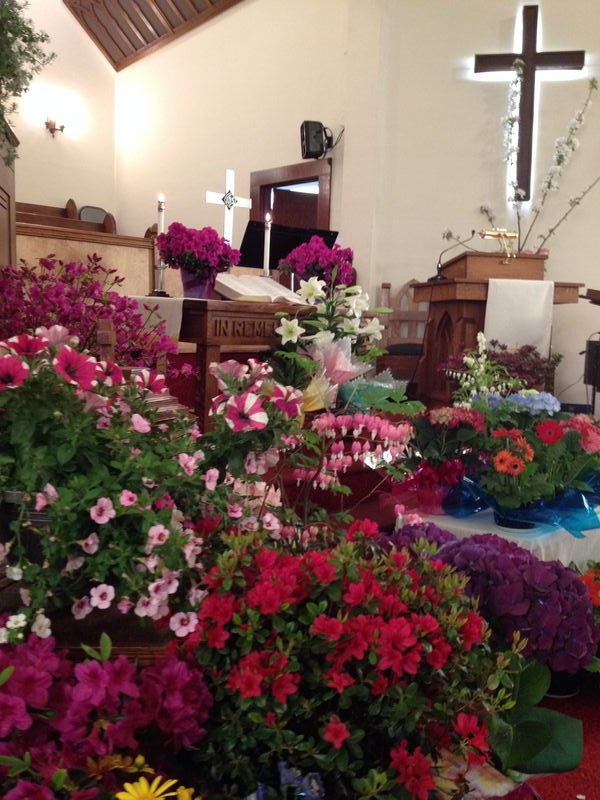 I leave you with this picture of our church on Easter. These beautiful flowers were made all the more special because at Thursday's service, the altar was stripped bare and draped in black. What a marvelous testament to the joy and rejoicing of Easter!