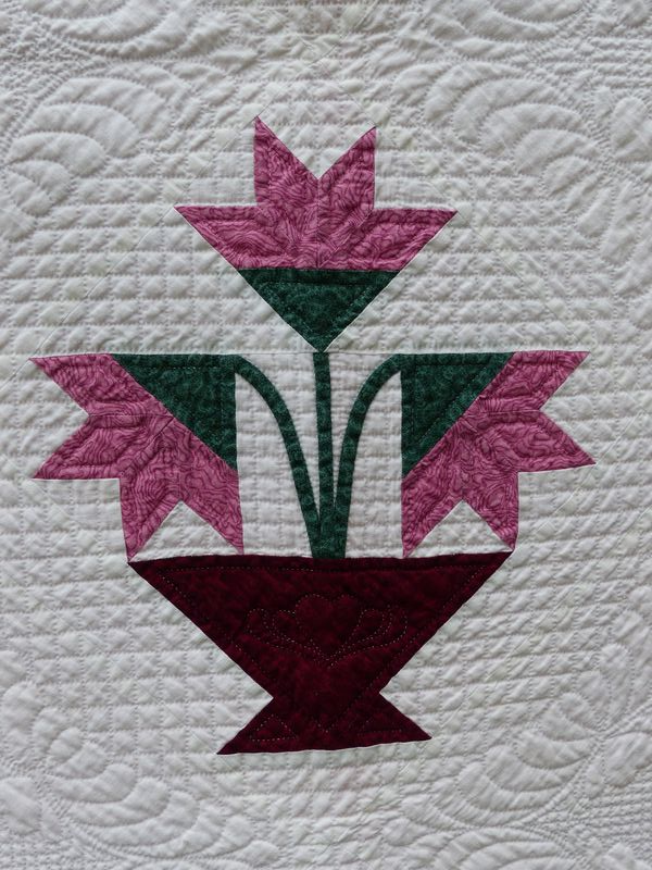 It's time for the Blogger's Quilt Festival and this is my first year to enter. This North Carolina Lily is one of my favorite quilts and is entered in the Hand Quilting category. I had always wanted a red and green quilt and this fit the bill perfectly. I drafted all of the feather quilting designs myself. This quilt has won numerous awards and was juried into the AQS Show in Paducah. I hope you'll pop on over to the Hand Quilted Quilts Category sometime during May 24-29 and give my quilt a vote. You'll need to scroll down a little to find my quilt.