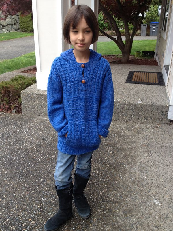 I'm happy to report that Isobel's sweater was a big hit! There was a bit of a crisis when it was left behind at the dance studio just days after I gave it to her, but it was retrieved without incident. I have to chuckle at her photo – she was trying to look "cool". Nine years old and it has started already!!